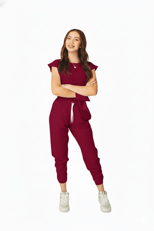 Virna prioriza la libertad de movimiento y el ajuste seguro. El pantalón con corte tipo jogger con jareta y puños en bajos ofrece confort activo sin perder imagen profesional.